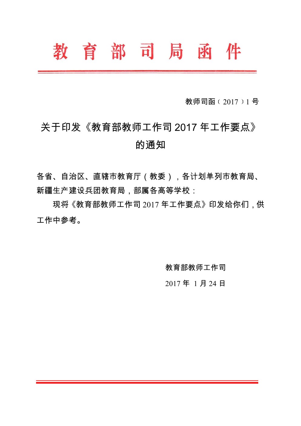 5.关于印发《教育部教师工作司2017年工作要点》的通知(教师司函〔2017〕1号)