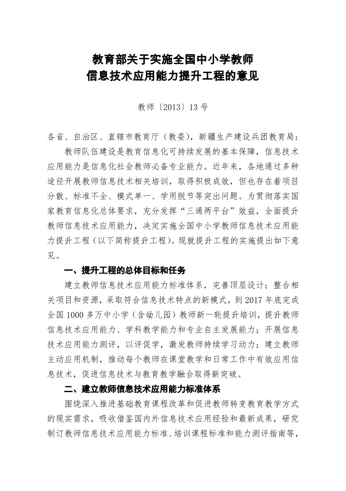 20.教育部关于实施全国中小学教师信息技术应用能力提升工程的意见(教师〔2013〕13号)