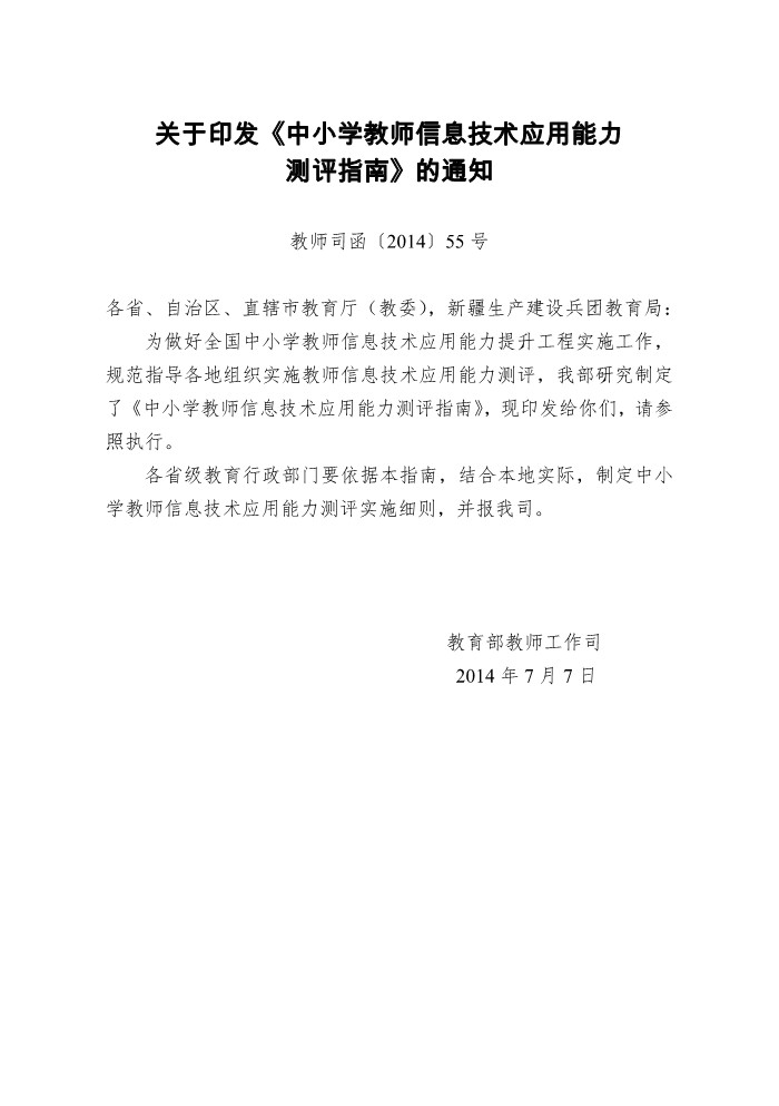 23.关于印发《中小学教师信息技术应用能力测评指南》的通知(教师司函〔2014〕55号)