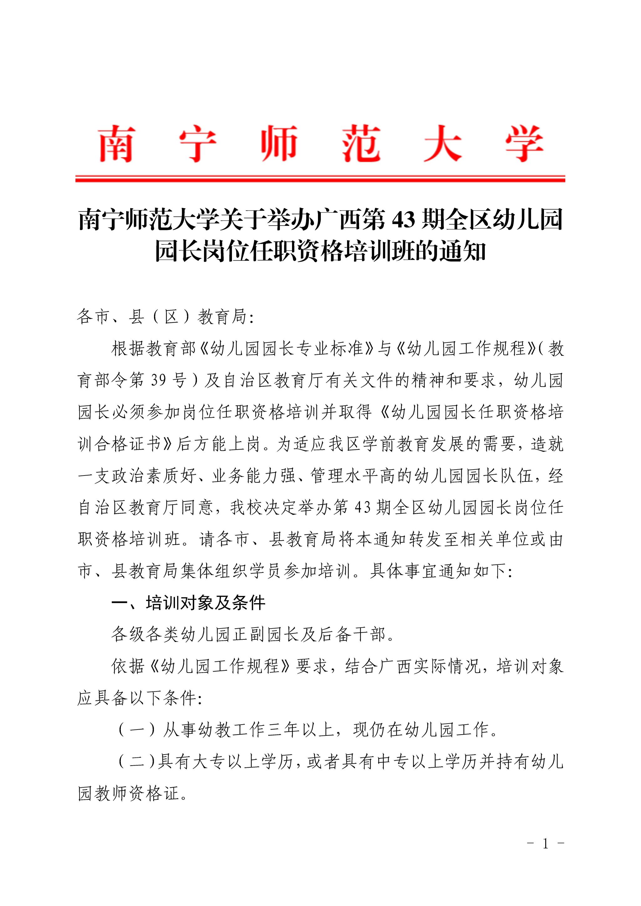 必威西汉姆联关于举办广西第43期全区幼儿园园长岗位任职资格培训班的通知